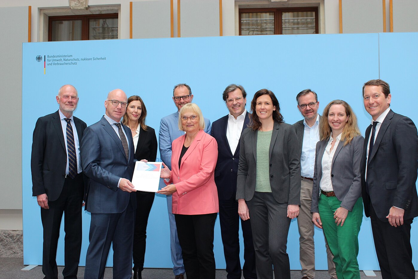 Berlin, 17. April 2023 - Vertreter der Papier- und Verlagswirtschaft haben heute der parlamentarischen Staatssekretärin im Bundesumweltministerium, Dr. Bettina Hoffmann, eine Fortschreibung und Erweiterung der seit 1994 bestehenden Selbstverpflichtungserklärung der Arbeitsgemeinschaft Graphische Papiere (AGRAPA) übergeben. Stellvertretend für die Trägerverbände der grafischen Papierkette verwies der Vorsitzende der AGRAPA und Geschäftsführer der Frankfurter Societäts-Druckerei Volker Hotop, auf die Erfolgsgeschichte der Selbstverpflichtung, die mit der aktuellen Erweiterung zu einer Verbesserung der Kreislaufwirtschaft von grafischen Papieren führen werde. So verpflichten sich die in den Verbänden* organisierten Unternehmen freiwillig zu einem höheren Einsatz von Altpapier bei der Produktion grafischer Papiere und einem schrittweisen Ausstieg aus der Nutzung von Zeitungsdruckfarben mit Mineralöl bis zum Jahr 2028.